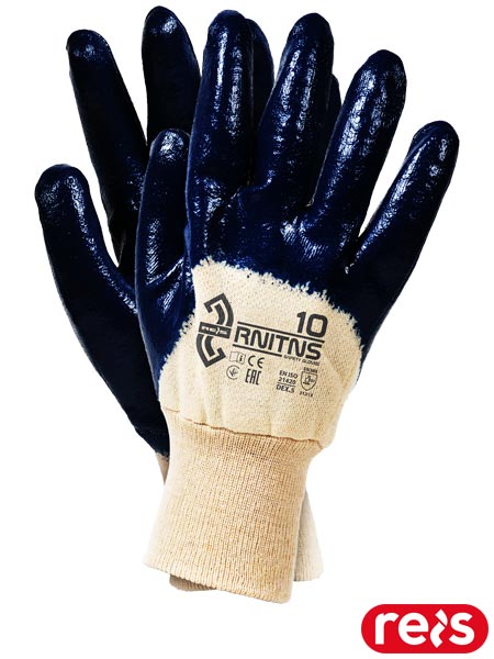 Rękawice ochronne.- dzianina: 80% bawełna, 20% poliester- powlekane nitrylem- zakończone dzianinowym ściągaczem- odporne na ścieranie, przetarcie czy też przebicie- zapewniają manualność oraz doskonałe czucie trzymanego przedmiotu- nitryl zwiększa odporność na smary, oleje, tłuszcze i węglowodory- zachowują swoją formę i tym samym mogą być prane- sprawdzają się w miejscach, gdzie następuje kontakt z wyżej wymienionymi substancjami- nitryl ulega biodegradacji, dzięki czemu rękawice nitrylowe są bezpieczne dla środowiska- doskonałe dla mechaników, wykorzystywane podczas przeładunku i transportu