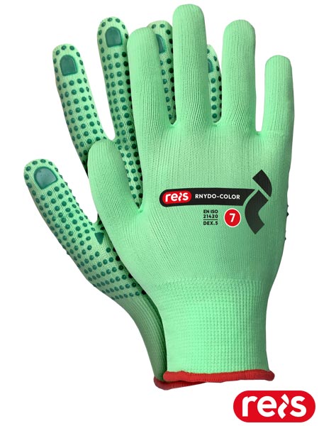 Rękawice ochronne.- dzianina: 100% poliester (ścieg 13)- jednostronne nakropienie z PCV na części chwytnej- zakończone ściągaczem- elastyczne, dzięki czemu świetnie dopasowują się do dłoni- rozciągliwe i wytrzymałe, mimo iż są cienkie- odporne na rozdarcie- idealne w przemyśle transportowym- sprawdzają się w budownictwie