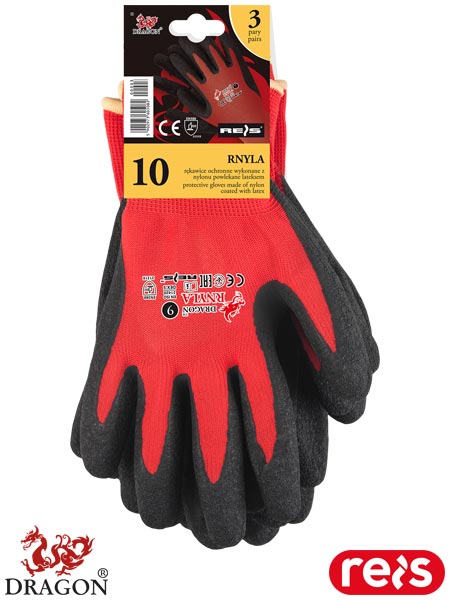 Rękawice ochronne.- dzianina: 100% nylon (ścieg 13)- powlekane lateksem o chropowatej strukturze- zakończone ściągaczem- zarówno dzianina jak i oblanie odporne na rozdarcie, rozciągliwe i wytrzymałe, mimo iż są cienkie- elastyczne, dzięki czemu świetnie dopasowują się do dłoni- zapewniają doskonałą manualność przy ograniczeniu ślizgania się trzymanego przedmiotu- potocznie zwane blue-bird- w pakiecie znajdują się 3 pary- każdy pakiet posiada zawieszkę, która umożliwia wszelkiego rodzaju prezentacje