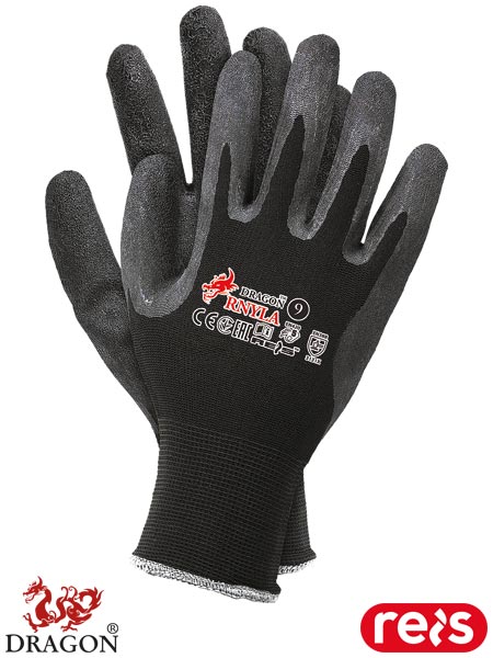 Rękawice ochronne.- dzianina: 100% nylon (ścieg 13)- powlekane lateksem o chropowatej strukturze- zakończone ściągaczem- lateks wykazuje odporność na detergenty oraz kwasy- zarówno dzianina jak i oblanie odporne na rozdarcie, rozciągliwe i wytrzymałe, mimo iż są cienkie- elastyczne, dzięki czemu świetnie dopasowują się do dłoni- zapewniają doskonałą manualność przy ograniczeniu ślizgania się trzymanego przedmiotu- potocznie zwane blue-bird