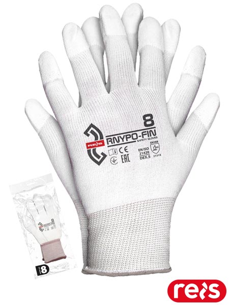 Rękawice ochronne.- dzianina: 100% nylon (ścieg 13)- powlekane poliuretanem na końcówkach palców- zakończone ściągaczem- charakteryzują się zwiększoną odpornością na ścieranie i przetarcie- idealnie nadają się do wykonywania skomplikowanych manipulacji- wykazują bardzo dużą elastyczność, a tym samym odporność na rozciąganie oraz świetnie dopasowują się do dłoni, zapewniają manualność oraz doskonałe czucie trzymanego przedmiotu- wykorzystywane do ogólnych prac mechanicznych- idealne do prac, gdzie wymagana jest precyzja- każda para pakowana w osobną torebkę, dzięki czemu świetnie się prezentują i są idealne na wszelkiego rodzaju prezentacje