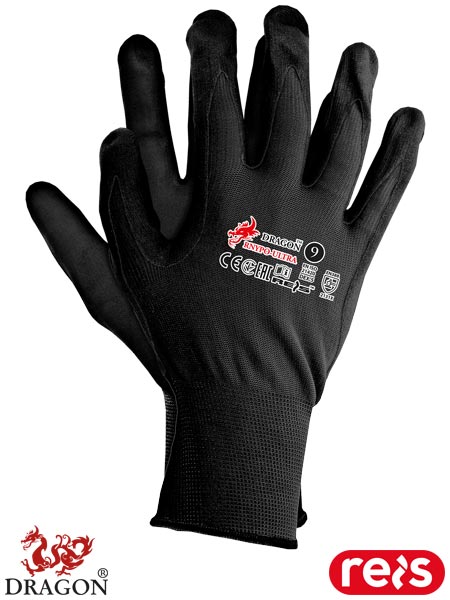 Rękawice ochronne.- dzianina: 100% nylon (ścieg 18)- powlekane ultra cienką powłoką poliuretanu- zakończone ściągaczem- zapewniają doskonałe czucie w trakcie wykonywanej pracy- przewiewne- przeznaczone do prac warsztatowych, monterskich, wykończeniowych
