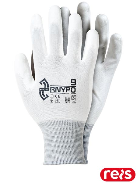 Rękawice ochronne.- dzianina: 100% nylon (ścieg 13)- powlekane poliuretanem- zakończone ściągaczem- charakteryzują się zwiększoną odpornością na ścieranie i rozdarcie- zapewniają manualność oraz doskonałe czucie trzymanego przedmiotu- wykazują bardzo dużą elastyczność, a tym samym odporność na rozciąganie oraz świetnie dopasowują się do dłoni- wykorzystywane do ogólnych prac mechanicznych- każda para pakowana w osobną torebkę, dzięki czemu świetnie się prezentują i są idealne na wszelkiego rodzaju prezentacje- przeznaczone do prania- po praniu zachowują swoje parametry ochronne