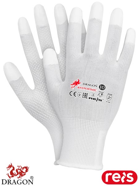 Rękawice ochronne.- dzianina: 100% nylon (ścieg 13)- powlekane poliuretanem na końcówkach palców- dodatkowe jednostronne mikronakropienie z PCV na części dłonicowej zapewnia dobrą chwytność podczas przenoszenia towarów, a także zwiększa trwałość rękawicy- zakończone ściągaczem- elastyczne, dzięki czemu świetnie dopasowują się do dłoni- rozciągliwe i wytrzymałe, mimo iż są cienkie- odporne na rozdarcie- zapewniają manualność oraz doskonałe czucie trzymanego przedmiotu- zgodne z normami EN388 (poziomy odporności: 3 1 1 X X) oraz EN420