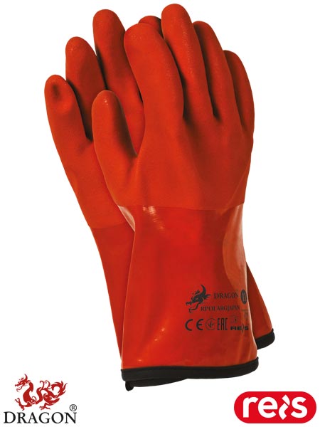 Rękawice ochronne ocieplane.- dzianina: 100% bawełna- ocieplane dzianiną polarową: 100% poliester- powlekane PCV- szorstka powierzchnia części chwytnej ułatwia chwytanie śliskich przedmiotów- hydrofobową wyściółkę można wywinąć na zewnątrz i bardzo szybko wysuszyć - zaprojektowana tak, by odprowadzać pot od skóry ręki- wytrzymałe na ścieranie