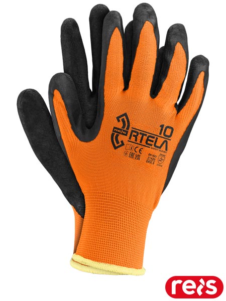 Rękawice ochronne.- dzianina: 100% poliester (ścieg 13)- powlekane lateksem o chropowatej strukturze zapewniającej doskonałą chwytność, nie powodując usztywnienia rękawicy- zakończone ściągaczem- odporne na ścieranie i rozdarcie- rozciągliwe i wytrzymałe, mimo iż są cienkie- wykazują bardzo dużą elastyczność oraz świetnie dopasowują się do dłoni- nie kurczą się w kontakcie z wodą oraz zapewniają doskonałą manualność przy ograniczeniu ślizgania się trzymanego przedmiotu- stosowane jako zamiennik dla rękawic RNYLA