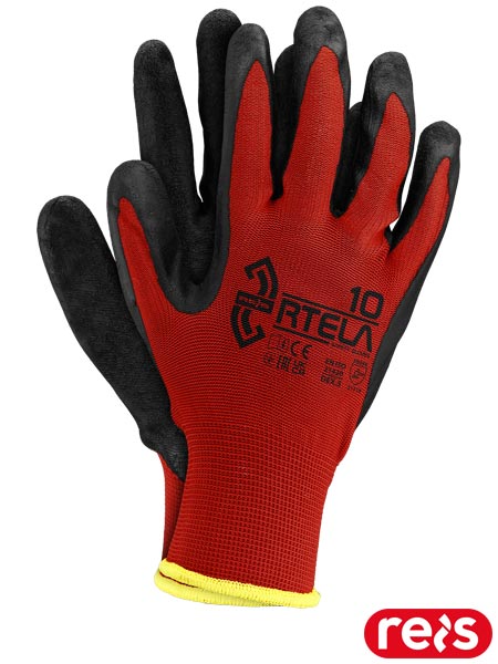 Rękawice ochronne.- dzianina: 100% poliester (ścieg 13)- powlekane lateksem o chropowatej strukturze zapewniającej doskonałą chwytność, nie powodując usztywnienia rękawicy- zakończone ściągaczem- odporne na ścieranie i rozdarcie- rozciągliwe i wytrzymałe, mimo iż są cienkie- wykazują bardzo dużą elastyczność oraz świetnie dopasowują się do dłoni- nie kurczą się w kontakcie z wodą oraz zapewniają doskonałą manualność przy ograniczeniu ślizgania się trzymanego przedmiotu- stosowane jako zamiennik dla rękawic RNYLA