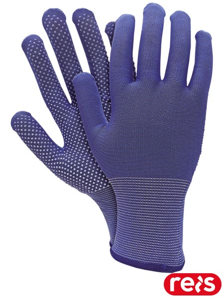 Rękawice ochronne.- dzianina: 100% poliester (ścieg 13)- jednostronne mikronakropienie z PCV na części chwytnej- zakończone ściągaczem- elastyczne dzięki czemu świetnie dopasowują się do dłoni- dostępne ze ściągaczem w kolorze: rozmiar 7 - zielonym, 8 - czerwonym, 9 - niebieskim, 10 - żółtym- przeznaczone do ogólnych prac mechanicznych, znajdują zastosowanie w przemyśle transportowym oraz budownictwie