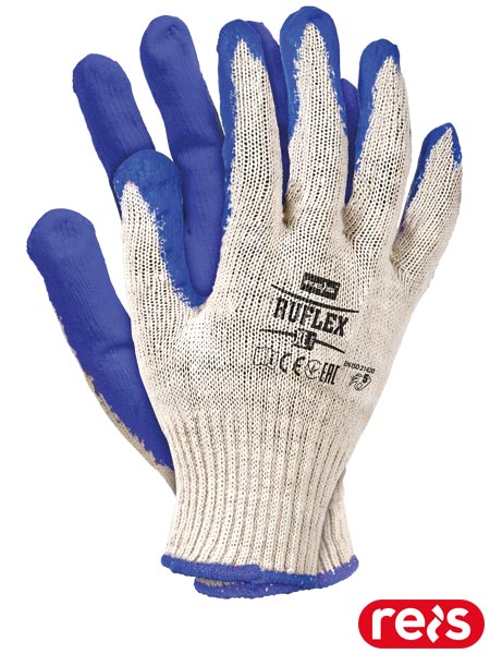 Rękawice ochronne.- dzianina: połączenie bawełny i poliestru (ścieg 10)- powlekane lateksem- zakończone ściągaczem- popularnie używane do wszelkiego rodzaju prac mechanicznych oraz w gospodarstwach domowych- znane jako wampirki