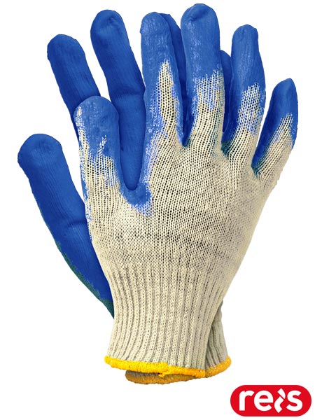 Rękawice ochronne.- dzianina: połączenie bawełny i poliestru (ścieg 10)- powlekane lateksem- zakończone ściągaczem- popularnie używane do wszelkiego rodzaju prac mechanicznych oraz w gospodarstwach domowych- znane jako wampirki