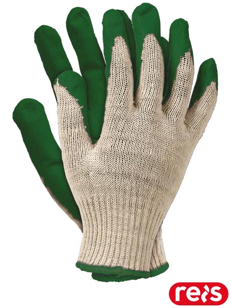 Rękawice ochronne.- wykonane z mieszanki bawełniano-poliestrowej (ścieg 10)- powlekane gumą- zakończone ściągaczem- popularnie używane do wszelkiego rodzaju prac mechanicznych oraz w gospodarstwach domowych- znane jako wampirki