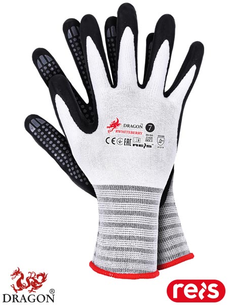 Rękawice ochronne.- dzianina: 97% poliester pochodzący z recyklingu, 3% elastan (ścieg 15)- powlekane ultra cienką powłoką spienionego nitrylu typu FOAM z dodatkowym nakropieniem z nitrylu- zakończone ściągaczem- charakteryzują się zwiększoną odpornością na ścieranie i przetarcie- zapewniają manualność oraz doskonałe czucie trzymanego przedmiotu- nitryl zwiększa odporność na smary i oleje- sprawdzają się w miejscach, gdzie następuje kontakt z wyżej wymienionymi substancjami- wykorzystywane do ogólnych prac mechanicznych