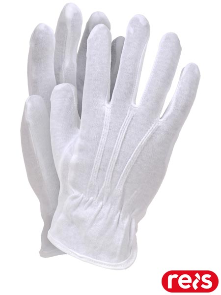 Rękawice ochronne.- dzianina: 100% bawełna- na części wierzchniej trzy szwy- od strony zewnętrznej delikatnie marszczone w nadgarstku- dobrze przepuszczają powietrze, pozwalając oddychać skórze- dzięki właściwościom bawełny nie elektryzują się i są wygodne w noszeniu- doskonale dopasowują się do dłoni, dzięki czemu zapewniają czucie trzymanego przedmiotu- stosowane, gdy wymagana jest odpowiednia prezencja i wygląd dłoni np. do przenoszenia sztandarów- przeznaczone do prac, w których wymagana jest manualność- świetnie sprawdzają się jako wkład do innych rękawic