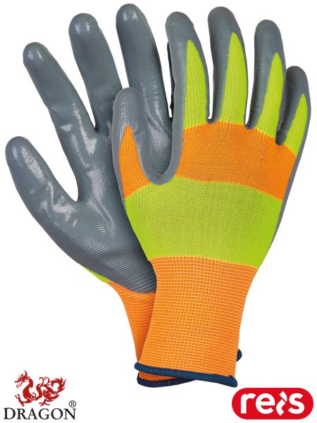Rękawice ochronne.- dzianina: 100% poliester (ścieg 13)- powlekane nitrylem typu smooth- zakończone ściągaczem- charakteryzują się zwiększoną odpornością na ścieranie- wykazują bardzo dużą elastyczność oraz świetnie dopasowują się do dłoni, dzięki czemu są idealne do wykonywania skomplikowanych manipulacji- zapewniają manualność oraz doskonałe czucie trzymanego przedmiotu- idealne dla drogowców, mechaników- zgodne z normami EN388 (poziomy odporności: 4 1 2 1 X) oraz EN420