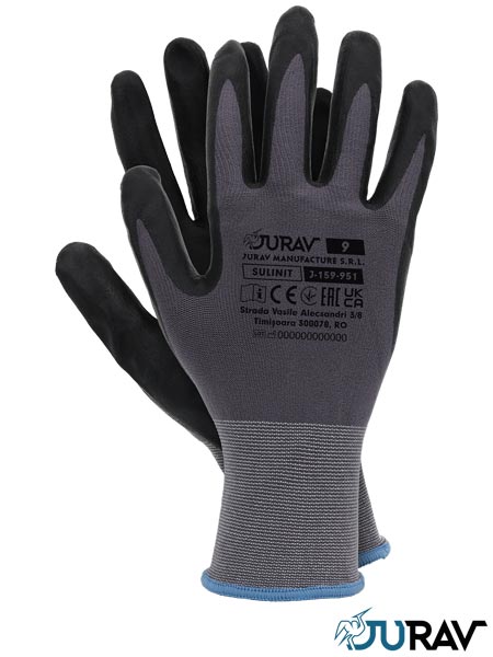 Rękawice ochronne.- dzianina: 80% nylon, 20% elastan (ścieg 15)- powlekane nitrylem typu FOAM- zakończone ściągaczem- wykazują bardzo dużą elastyczność oraz świetnie dopasowują się do dłoni- zapewniają manualność oraz doskonałe czucie trzymanego przedmiotu- nitryl zwiększa odporność na smary i oleje- wykorzystywane do ogólnych prac mechanicznych
