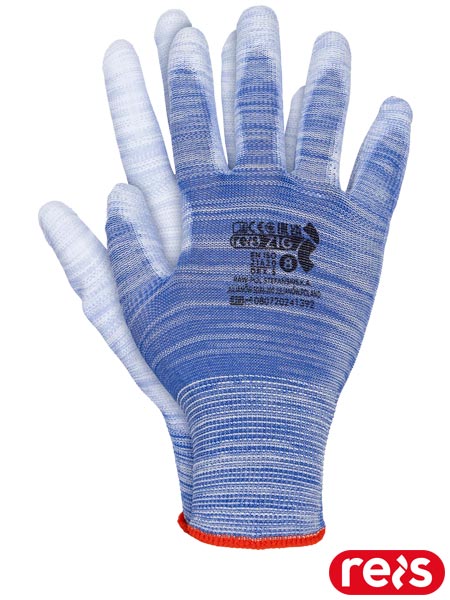 Rękawice ochronne.- dzianina: 100% poliester (ścieg 13)- powlekane poliuretanem- zakończone ściągaczem- zapewniają manualność oraz doskonałe czucie trzymanego przedmiotu- wykazują bardzo dużą elastyczność oraz świetnie dopasowują się do dłoni- idealne do prac, gdzie wymagana jest precyzja