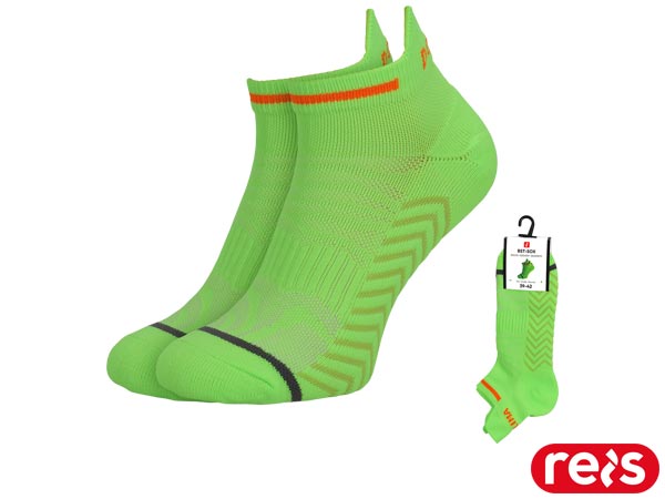 Skarpety.- dzianina: 72% bawełna, 25% poliester, 3% elastan- waga pary około 40 g- system kanalików wentylacyjnych wspomaga utrzymanie optymalnej wymiany powietrza odprowadzając wilgoć oraz nadmiar powietrza- pięta typu Y odpowiednio wyprofilowana dzianina doskonale dopasowuje się do stopy, stabilizując ją- płaski szew na palcach zapewniający komfort użytkowania- nieuciskający ściągacz z anatomicznym mankietem chroniącym ścięgna Achillesa- doskonale sprawdzą się zarówno w trakcie pracy, treningów, jak i codziennych aktywności- umieszczone na małej zawieszce, która umożliwia wygodną prezentację na wystawie