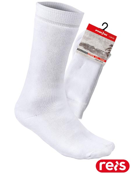 Długie skarpety termoizolacyjne.- frotte- sięgają na długość 2/3 łydki- przeznaczone do długotrwałego noszenia w niskich temperaturach- zapewniają komfort noszenia- chronią stopy przed obtarciem- posiadają właściwości hypoalergiczne- umieszczone na małej zawieszce, która umożliwia wygodną prezentację na wystawie