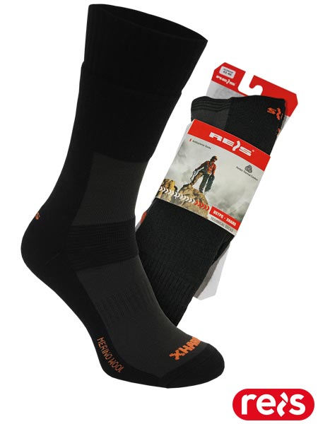 Skarpety termiczne do pracy i codziennego użytku.- 35% Merino Wool, 35% Poliacryl, 15% Coolmax®, 13% Prolen Siltex, 2% Lycra- przędza Prolen Siltex zapobiega powstawaniu przykrego zapachu i zapewniają maksymalną higienę- wełna merynosa, gwarantuje wspaniałą izolację cieplną oraz długotrwałe uczucie suchości- bezuciskowy, podwójny ściągacz zapewnia komfort użytkowania- system kanalików wentylacyjnych wspomaga utrzymanie optymalnej wymiany powietrza odprowadzając wilgoć oraz nadmiar powietrza- wzmocniona ochrona stopy i ścięgna Achillesa- amortyzacja stopy w obuwiu (warstwa frotte)- pięta typu Y odpowiednio wyprofilowana dzianina doskonale dopasowuje się do stopy, stabilizując ją- elastyczna opaska na śródstopiu zapobiega zsuwaniu i przekręcaniu skarpety- płaski szew przy łączeniu nad palcami - zapobiega powstawaniu otarć nad palcami, nawet w ekstremalnych warunkach