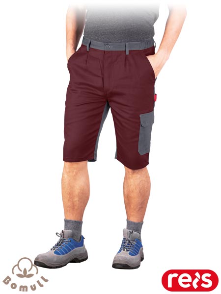 Spodnie ochronne do pasa z krótkimi nogawkami BOMULL.- tkanina: 100% bawełna- gramatura 260-270 g/m2- zapinane na guziki- możliwość regulacji w pasie dzięki gumce w bocznych partiach- sześć kieszeni: dwie boczne, dwie tylne na rzep oraz dwie na nogawkach w tym jedna na rzep