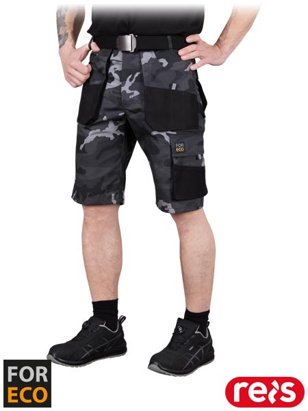 Spodnie ochronne do pasa z krótkimi nogawkami, męskie.- materiał główny: tkanina 80% poliester, 20% bawełna o gramaturze 260 g/m2- wstawki: tkanina 100% poliester Oxford 600D o gramaturze 200 g/m2- zapinane na guzik oraz zamek błyskawiczny- dwie podwójne kieszenie boczne z przegródkami oraz dwie tylne zapinane na rzep- dwie podwójne kieszenie na nogawkach, w tym jedna podłużna- gumka w pasie w bocznych partiach umożliwiająca lepsze dopasowanie- dodatkowa szlufka na akcesoria zapinana na rzep- końcówka do przypięcia kluczy- uchwyt na młotek na lewej nogawce- odblaskowe elementy zwiększające widoczność- fason: REGULAR- testowane na zawartość szkodliwych dla zdrowia substancji zgodnie ze standardami OEKO-TEX® Standard 100