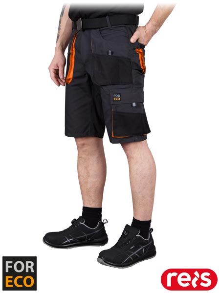 Spodnie ochronne do pasa z krótkimi nogawkami, męskie.- materiał główny: tkanina 80% poliester, 20% bawełna o gramaturze 260 g/m2- wstawki: tkanina 100% poliester Oxford 600D o gramaturze 200 g/m2- zapinane na guzik oraz zamek błyskawiczny- dwie podwójne kieszenie boczne z przegródkami oraz dwie tylne zapinane na rzep- dwie podwójne kieszenie na nogawkach, w tym jedna podłużna- gumka w pasie w bocznych partiach umożliwiająca lepsze dopasowanie- dodatkowa szlufka na akcesoria zapinana na rzep- końcówka do przypięcia kluczy- uchwyt na młotek na lewej nogawce- odblaskowe elementy zwiększające widoczność- fason: REGULAR- testowane na zawartość szkodliwych dla zdrowia substancji zgodnie ze standardami OEKO-TEX® Standard 100