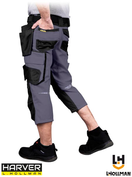 Spodnie ochronne do pasa HARVER z krótkimi nogawkami typu rybaczki, męskie.- tkanina: 65% poliester, 35% bawełna- gramatura 290 g/m2- zapinane na guzik oraz zamek błyskawiczny- dwie kieszenie boczne, w tym jedna podwójna, dwie kieszenie monterskie z przegródkami oraz dwie tylne, w tym jedna zapinana na rzep- kieszenie na nogawkach, w tym jedna potrójna oraz jedna podwójna podłużna z wąskimi przegródkami- kieszenie na wkładki nakolannikowe wkładane od góry z zapięciem na rzep- wyprofilowane kolana- dodatkowa szlufka na akcesoria zapinana na rzep- końcówka do przypięcia kluczy- uchwyt na młotek na prawej nogawce- odblaskowe elementy zwiększające widoczność- fason: REGULAR- testowane na zawartość szkodliwych dla zdrowia substancji zgodnie ze standardami OEKO-TEX® Standard 100