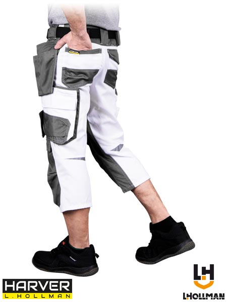 Spodnie ochronne do pasa HARVER z krótkimi nogawkami typu rybaczki, męskie.- tkanina: 65% poliester, 35% bawełna- gramatura 290 g/m2- zapinane na guzik oraz zamek błyskawiczny- dwie kieszenie boczne, w tym jedna podwójna, dwie kieszenie monterskie z przegródkami oraz dwie tylne, w tym jedna zapinana na rzep- kieszenie na nogawkach, w tym jedna potrójna oraz jedna podwójna podłużna z wąskimi przegródkami- kieszenie na wkładki nakolannikowe wkładane od góry z zapięciem na rzep- wyprofilowane kolana- dodatkowa szlufka na akcesoria zapinana na rzep- końcówka do przypięcia kluczy- uchwyt na młotek na prawej nogawce- odblaskowe elementy zwiększające widoczność- fason: REGULAR- testowane na zawartość szkodliwych dla zdrowia substancji zgodnie ze standardami OEKO-TEX® Standard 100