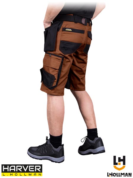 Spodnie ochronne do pasa HARVER z krótkimi nogawkami.- tkanina: 65% poliester, 35% bawełna- gramatura 300 g/m2- zapinane na guzik i zamek błyskawiczny- cztery kieszenie po bokach, w tym dwie doszywane - doskonałe do przechowywania narzędzi- dwie kieszenie z tyłu, w tym jedna zapinana na rzep- kieszenie na nogawkach, w tym na telefon komórkowy- końcówka do przypięcia kluczy- testowane na zawartość szkodliwych dla zdrowia substancji zgodnie ze standardami OEKO-TEX® Standard 100