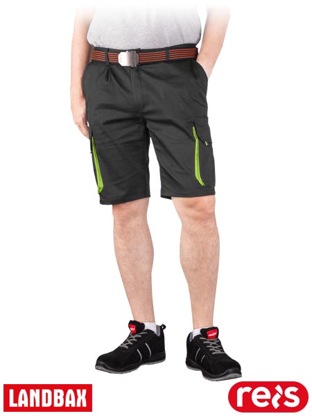 Elastyczne spodnie ochronne do pasa LAND z krótkimi nogawkami, męskie.- 62% poliester, 35% bawełna, 3% elastan- gramatura 240 g/m2- zapinane na guzik i zamek błyskawiczny- gumka w pasie w tylnej partii zwiększa swobodę ruchów oraz umożliwia lepsze dopasowanie- dwie kieszenie z tyłu na rzepy oraz dwie boczne- dwie kieszenie na nogawkach- w części tylnej dodatkowe wzmocnienie co zwiększa wytrzymałość spodni na przetarcie- dzięki zastosowaniu elastanu spodnie lepiej dopasowują się do sylwetki, jednocześnie nie krępując ruchów- testowane na zawartość szkodliwych dla zdrowia substancji zgodnie ze standardami OEKO-TEX® Standard 100