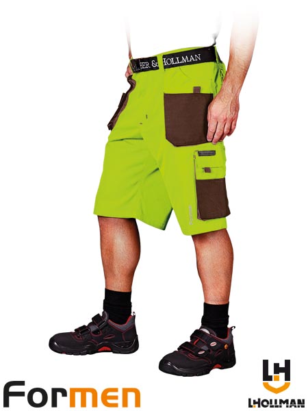 Spodnie ochronne do pasa FORMEN z krótkimi nogawkami, męskie.- materiał główny: tkanina o splocie canvas 65% poliester, 35% bawełna o gramaturze 270g/m2- wstawki: tkanina 100% poliester Oxford 600D o gramaturze 240 g/m2 oraz elementy z tkaniny Cordura 100% nylon 500D o gramaturze 200 g/m2- zapinane na guzik oraz zamek błyskawiczny- dwie podwójne kieszenie boczne oraz dwie tylne zapinane na rzep- kieszenie na nogawkach, w tym jedna zapinana na rzep z dodatkowymi kieszonkami na akcesoria oraz jedna podłużna z przegródkami- gumka w pasie w tylnej partii umożliwiająca lepsze dopasowanie- końcówka do przypięcia kluczy- uchwyt na młotek na prawej nogawce- odblaskowe elementy- fason: REGULAR– testowane na zawartość szkodliwych dla zdrowia substancji zgodnie ze standardami OEKO-TEX® Standard 100