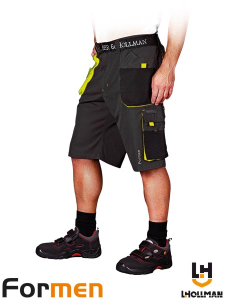 Spodnie ochronne do pasa FORMEN z krótkimi nogawkami.- 65% poliester, 35% bawełna- gramatura 270 g/m2- dwie kieszenie z tyłu na rzepy oraz dwie boczne podwójne, w tym jedna z kieszonką na telefon- jedna kieszeń na nogawce na rzepy z dodatkowymi kieszonkami na akcesoria oraz jedna boczna podłużna- duża liczba kieszeni zwiększa funkcjonalność spodni- końcówka do przypięcia kluczy- pętelki umożliwiające doczepienie dodatkowych akcesoriów- gumka w pasie w tylnej partii zwiększa swobodę ruchów oraz umożliwia lepsze dopasowanie- na kieszeniach dodatkowe wzmocnienie co zwiększa wytrzymałość spodni na przetarcia- staranne wykonanie oraz zwiększona wytrzymałość zapewniają wysoki komfort użytkowania- testowane na zawartość szkodliwych dla zdrowia substancji zgodnie ze standardami OEKO-TEX® Standard 100