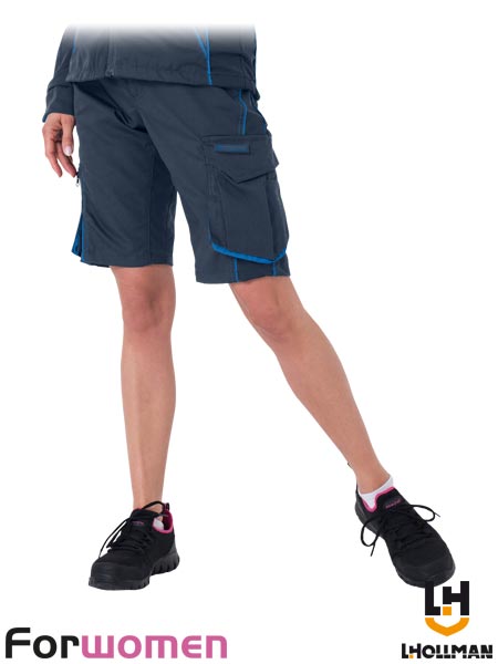 Spodnie ochronne do pasa FORWOMEN z krótkimi nogawkami, damskie.- materiał główny: tkanina o splocie canvas 65% poliester, 35% bawełna o gramaturze 220 g/m2- wstawki: tkanina 90% poliester, 10% elastan o gramaturze 220 g/m2- zapinane na guzik oraz zamek błyskawiczny- dwie kieszenie boczne oraz dwie tylne- kieszenie na nogawkach, w tym jedna podwójna zapinana na rzep z przegródką na akcesoria oraz jedna potrójna podłużna- gumka w pasie w bocznych partiach umożliwiająca lepsze dopasowanie- końcówka do przypięcia kluczy- odblaskowe elementy- testowane na zawartość szkodliwych dla zdrowia substancji zgodnie ze standardami OEKO-TEX® Standard 100