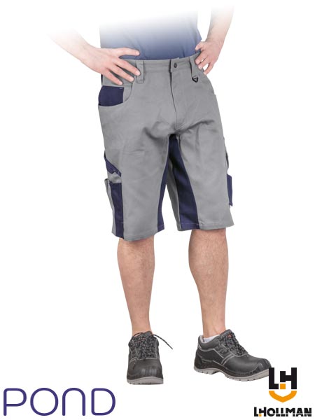 Spodnie ochronne do pasa z krótkimi nogawkami POND.- 100% bawełna- gramatura 240 g/m2- dwie boczne kieszenie oraz dwie tylne, w tym jedna zapinana na rzep- kieszenie na nogawkach, w tym na telefon komórkowy- końcówka do przypięcia kluczy- idealne na upalne dni