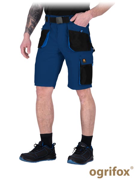 Spodnie ochronne do pasa OGR z krótkimi nogawkami, męskie.- materiał główny: tkanina o splocie canvas 80% poliester, 20% bawełna o gramaturze 260 g/m2- wstawki: tkanina 100% poliester Oxford 600D o gramaturze 200 g/m2- zapinane na guzik oraz zamek błyskawiczny- dwie podwójne kieszenie boczne z przegródkami oraz dwie tylne zapinane na rzep- dwie kieszenie na nogawkach, w tym jedna na narzędzia- gumka w pasie umożliwiająca lepsze dopasowanie- uchwyt na młotek na lewej nogawce- fason: REGULAR