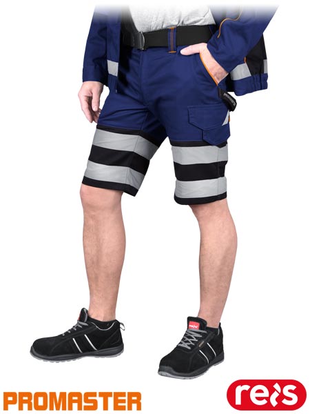 Spodnie ochronne do pasa z krótkimi nogawkami PROM.- 65% poliester, 35% bawełna- gramatura 295-300 g/m2- wstawki z żółtego i pomarańczowego materiału 80% poliester, 20% bawełna- zapinane na guzik i zamek błyskawiczny- dwie kieszenie po bokach- dwie kieszenie z tyłu zapinane na rzep- gumka w pasie w tylnej partii zwiększa swobodę ruchów oraz umożliwia lepsze dopasowanie- możliwość regulacji w pasie dzięki guzikom- końcówka do przypięcia kluczy- pasy odblaskowe zapewniają lepszą widoczność- sprawdzona jakość, udoskonalony design- spełniają wymagania normy EN ISO 20471* (dotyczy pasów) oraz EN ISO 13688