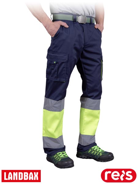 Elastyczne spodnie ochronne do pasa BAX, męskie.- 62% poliester, 35% bawełna, 3% elastan o gramaturze 240 g/m2- wstawki z kontrastowego materiału 65% poliester, 35% bawełna o gramaturze 210 g/m2- zapinane na guzik i zamek błyskawiczny- dwie boczne kieszenie oraz dwie tylne zapinane na rzep- dwie kieszenie na nogawkach zapinane na rzep- gumka w pasie w tylnej partii zwiększa swobodę ruchów oraz umożliwia lepsze dopasowanie- spodnie chronią podczas pracy, zapewniając przy tym dużą wygodę- pasy odblaskowe zapewniają lepszą widoczność- testowane na zawartość szkodliwych dla zdrowia substancji zgodnie ze standardami OEKO-TEX® Standard 100- spełniają wymagania normy EN ISO 20471 (klasa 1)