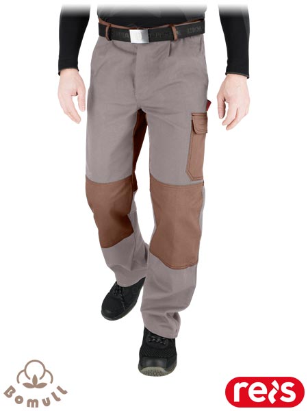 Spodnie ochronne do pasa BOMULL.- tkanina: 100% bawełna- gramatura 260-270 g/m2- sześć kieszeni: dwie boczne, dwie tylne na rzep oraz dwie na nogawkach w tym jedna na rzep- możliwość regulacji w pasie dzięki gumce w bocznych partiach- na kolanach kieszenie na wkładki nakolannikowe