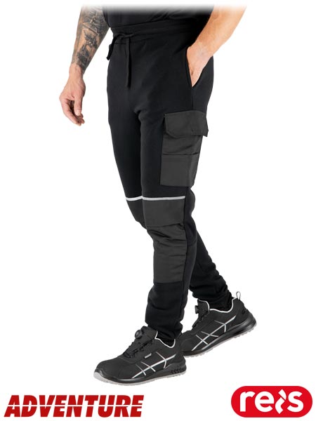 Spodnie ochronne dresowe do pasa BUZON, męskie.- materiał główny: dzianina 100% poliester o gramaturze 260 g/m2- wstawki: tkanina o splocie canvas 80% poliester, 20% bawełna o gramaturze 260 g/m2- dwie kieszenie boczne oraz jedna tylna zapinana na rzep- kieszeń na nogawce z przegródkami- kieszenie na wkładki nakolannikowe wkładane od góry z zapięciem na rzep- troczki oraz rozciągliwa gumka w pasie umożliwiająca lepsze dopasowanie- nogawki zakończone ściągaczem- odblaskowe elementy- idealne zarówno do pracy, jak i codziennego użytku- fason: REGULAR