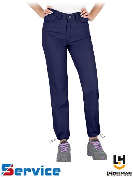 Spodnie ochronne do pasa, damskie.- tkanina o splocie twill: 80% poliester, 20% bawełna- gramatura 240 g/m2- dwie boczne kieszenie oraz dwie kieszenie z tyłu- lekko rozszerzane nogawki zakończone troczkami- idealne dla serwisu sprzątającego, a także do użytku w sklepach czy kwiaciarniach