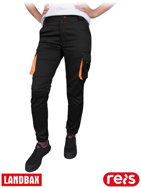 Elastyczne spodnie ochronne do pasa FRAU-JOG, damskie.- tkanina: 62% poliester, 35% bawełna, 3% elastan- gramatura 240 g/m2- zapinane na guzik i zamek błyskawiczny- gumka w pasie w tylnej partii zwiększa swobodę ruchów oraz umożliwia lepsze dopasowanie- dwie kieszenie z tyłu na rzepy oraz dwie boczne- dwie kieszenie na nogawkach- w części tylnej dodatkowe wzmocnienie co zwiększa wytrzymałość spodni na przetarcie- nogawki wykończone ściągaczami- dzięki zastosowaniu elastanu spodnie lepiej dopasowują się do sylwetki, jednocześnie nie krępując ruchów- testowane na zawartość szkodliwych dla zdrowia substancji zgodnie ze standardami OEKO-TEX® Standard 100