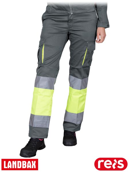 Elastyczne spodnie ochronne do pasa FRAUBAX, damskie.- 62% poliester, 35% bawełna, 3% elastan o gramaturze 240 g/m2- wstawki z kontrastowego materiału 65% poliester, 35% bawełna o gramaturze 210 g/m2- zapinane na guzik i zamek błyskawiczny- dwie boczne kieszenie oraz dwie tylne zapinane na rzep- dwie kieszenie na nogawkach zapinane na rzep- gumka w pasie w tylnej partii zwiększa swobodę ruchów oraz umożliwia lepsze dopasowanie- spodnie chronią podczas pracy, zapewniając przy tym dużą wygodę- pasy odblaskowe zapewniają lepszą widoczność- testowane na zawartość szkodliwych dla zdrowia substancji zgodnie ze standardami OEKO-TEX® Standard 100