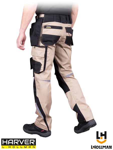 Spodnie ochronne do pasa HARVER, męskie.- tkanina: 65% poliester, 35% bawełna- gramatura 290 g/m2- zapinane na guzik oraz zamek błyskawiczny- dwie kieszenie boczne, w tym jedna podwójna, dwie kieszenie monterskie z przegródkami oraz dwie tylne, w tym jedna zapinana na rzep- kieszenie na nogawkach, w tym jedna potrójna oraz jedna podwójna podłużna z wąskimi przegródkami- kieszenie na wkładki nakolannikowe wkładane od góry z zapięciem na rzep- wyprofilowane kolana- dodatkowa szlufka na akcesoria zapinana na rzep- końcówka do przypięcia kluczy- uchwyt na młotek na prawej nogawce- odblaskowe elementy zwiększające widoczność- fason: REGULAR- testowane na zawartość szkodliwych dla zdrowia substancji zgodnie ze standardami OEKO-TEX® Standard 100