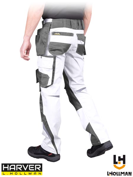 Spodnie ochronne do pasa HARVER, męskie.- tkanina: 65% poliester, 35% bawełna- gramatura 290 g/m2- zapinane na guzik oraz zamek błyskawiczny- dwie kieszenie boczne, w tym jedna podwójna, dwie kieszenie monterskie z przegródkami oraz dwie tylne, w tym jedna zapinana na rzep- kieszenie na nogawkach, w tym jedna potrójna oraz jedna podwójna podłużna z wąskimi przegródkami- kieszenie na wkładki nakolannikowe wkładane od góry z zapięciem na rzep- wyprofilowane kolana- dodatkowa szlufka na akcesoria zapinana na rzep- końcówka do przypięcia kluczy- uchwyt na młotek na prawej nogawce- odblaskowe elementy zwiększające widoczność- fason: REGULAR- testowane na zawartość szkodliwych dla zdrowia substancji zgodnie ze standardami OEKO-TEX® Standard 100