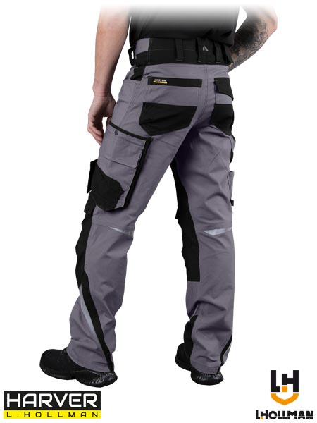 Spodnie ochronne do pasa HARVERAIR.- tkanina: 97% bawełna, 3% elastan- gramatura 240 g/m2- zapinane na guzik i zamek błyskawiczny- dwie kieszenie po bokach- dwie kieszenie z tyłu, w tym jedna zapinana na rzep- kieszenie na nogawkach, w tym na telefon komórkowy- na kolanach kieszenie na wkładki nakolannikowe zapinane na rzep- odblaskowe elementy- „S” shape - profilowane nogawki zapewniają lepsze dopasowanie się do sylwetki użytkownika- testowane na zawartość szkodliwych dla zdrowia substancji zgodnie ze standardami OEKO-TEX® Standard 100