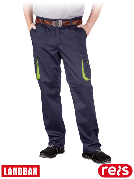 Elastyczne spodnie ochronne do pasa LAND, męskie.- tkanina: 62% poliester, 35% bawełna, 3% elastan- gramatura 240 g/m2- zapinane na guzik oraz zamek błyskawiczny- dwie kieszenie boczne oraz dwie tylne zapinane na rzep- dwie kieszenie na nogawkach- gumka w pasie w tylnej partii umożliwiająca lepsze dopasowanie- testowane na zawartość szkodliwych dla zdrowia substancji zgodnie ze standardami OEKO-TEX® Standard 100