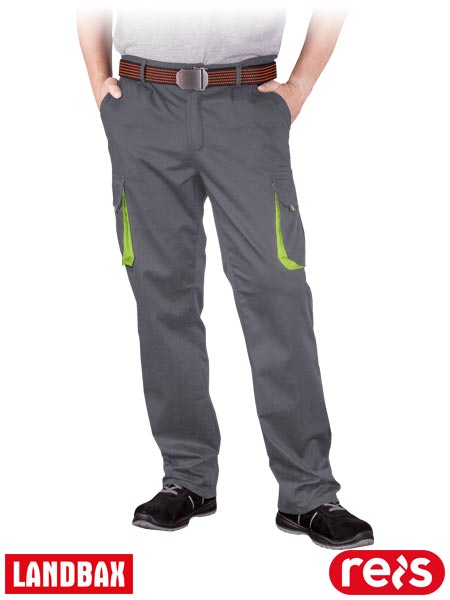 Elastyczne spodnie ochronne do pasa LAND, męskie.- tkanina: 62% poliester, 35% bawełna, 3% elastan- gramatura 240 g/m2- zapinane na guzik oraz zamek błyskawiczny- dwie kieszenie boczne oraz dwie tylne zapinane na rzep- dwie kieszenie na nogawkach- gumka w pasie w tylnej partii umożliwiająca lepsze dopasowanie- testowane na zawartość szkodliwych dla zdrowia substancji zgodnie ze standardami OEKO-TEX® Standard 100