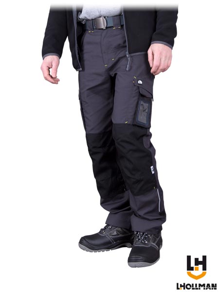 Spodnie ochronne do pasa BUILDER.- 65% poliester, 35% bawełna- gramatura 280 g/m2- zapinane na guzik i zamek błyskawiczny- dwie kieszenie po bokach- dwie kieszenie z tyłu zapinane na rzep- trzy kieszenie na nogawkach zapinane na rzep- na prawej nogawce dodatkowe kieszonki na przybory np. długopis- na lewej nogawce kieszonka na identyfikator- gumki w pasie w bocznych partiach zwiększają swobodę ruchów oraz umożliwiają lepsze dopasowanie- wzmocnienia na kolanach z materiału Cordura jednocześnie tworzą dodatkowe kieszenie na wkładki nakolannikowe- odblaskowe elementy- uchwyt na narzędzia- testowane na zawartość szkodliwych dla zdrowia substancji zgodnie ze standardami OEKO-TEX® Standard 100
