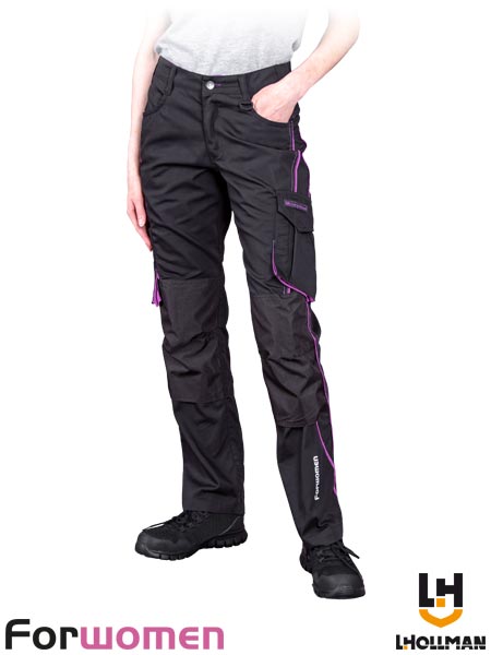 Spodnie ochronne do pasa FORWOMEN, damskie.- materiał główny: tkanina o splocie canvas 65% poliester, 35% bawełna o gramaturze 220 g/m2- wstawki: tkanina 90% poliester, 10% elastan o gramaturze 220 g/m2- wstawki na kolanach: tkanina 100% poliester Oxford 300D o gramaturze 175 g/m2- zapinane na guzik oraz zamek błyskawiczny- dwie kieszenie boczne oraz dwie tylne- kieszenie na nogawkach, w tym jedna podwójna zapinana na rzep z przegródką na akcesoria oraz jedna potrójna podłużna- kieszenie na wkładki nakolannikowe wkładane od dołu- gumka w pasie w bocznych partiach umożliwiająca lepsze dopasowanie- końcówka do przypięcia kluczy- odblaskowe elementy- testowane na zawartość szkodliwych dla zdrowia substancji zgodnie ze standardami OEKO-TEX® Standard 100