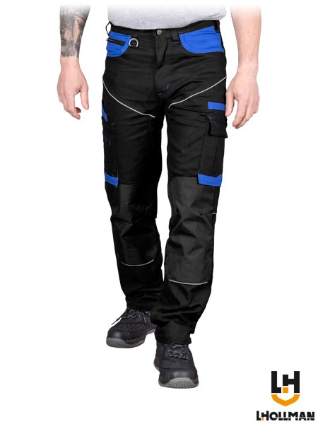 Spodnie ochronne do pasa LEADER.- tkanina: 97% bawełna, 3% elastan o gramaturze 270 g/m2- wstawki z kontrastowego materiału wykonane z tkaniny typu rip-stop- w tylnej górnej części spodni, kroku oraz w tylnej dolnej części nogawek wstawka z czterokierunkowego streczu- zapinane na guzik i zamek błyskawiczny- trzy kieszenie po bokach, w tym jedna zapinana na suwak- dwie kieszenie z tyłu- kieszenie na nogawkach, w tym na telefon komórkowy- końcówka do przypięcia kluczy- na kolanach kieszenie na wkładki nakolannikowe KING BEE zapinane na rzep wykonane z materiału poliester Oxford 600D- odblaskowe elementy zapewniają lepszą widoczność- spełniają wymagania normy EN ISO 13688